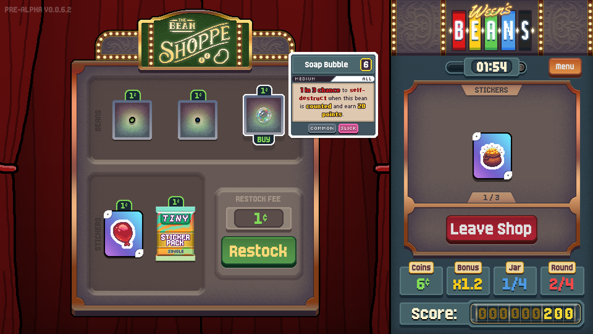 - Buy stuff! Use your coins to purchase special beans and stickers from the shop between rounds.